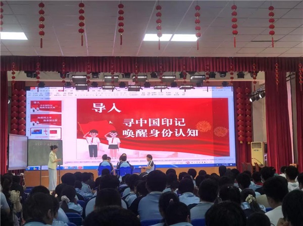 程慧老師的課堂,“解碼國家標志 深悟象征意義”“回悟建國歷史 致敬英雄先烈”“感悟國家發(fā)展 踐行公民職責”幾個環(huán)節(jié)環(huán)環(huán)相扣,課堂緊湊流暢,在場的學生教師都沉浸其中。